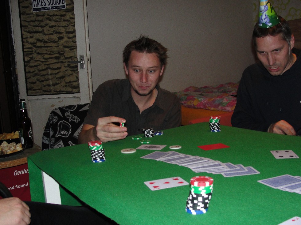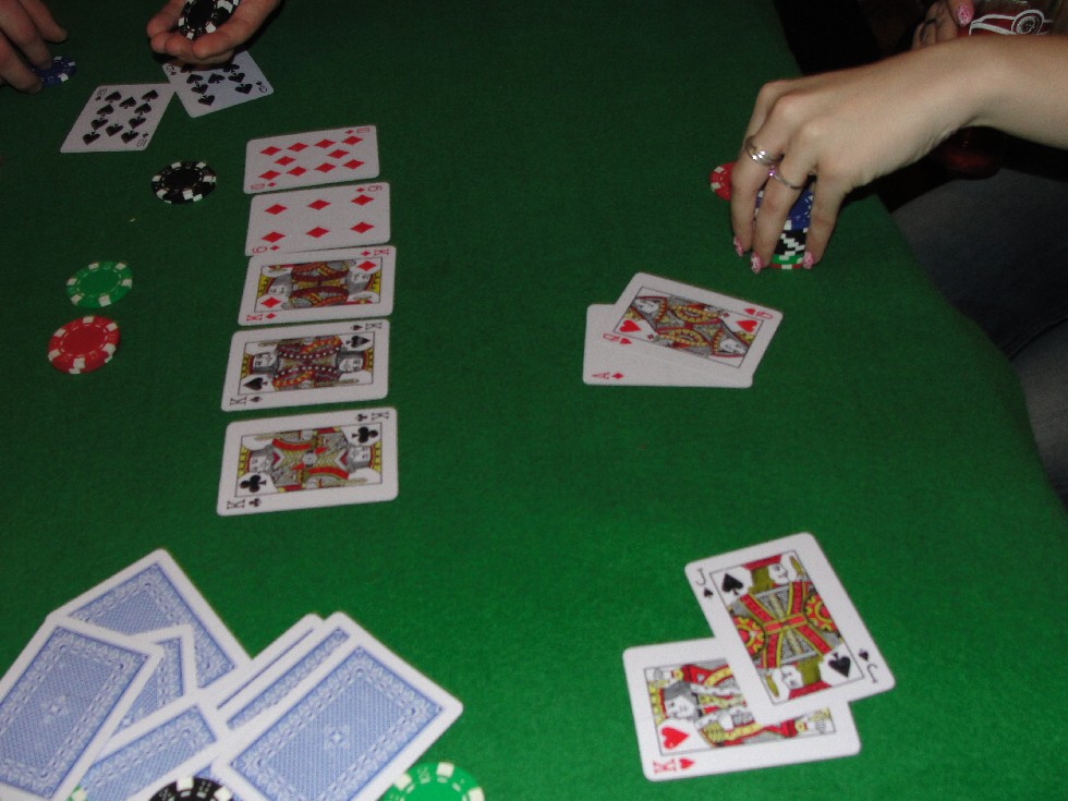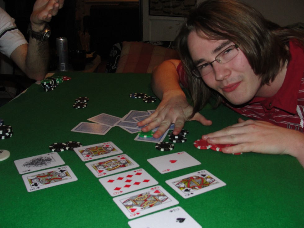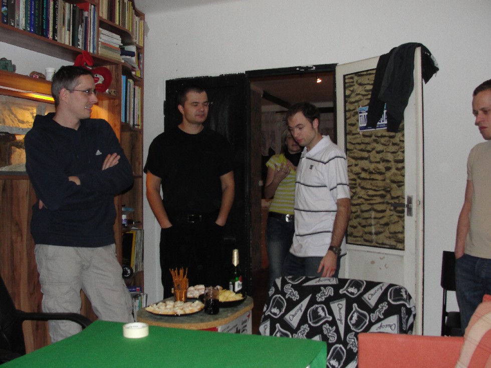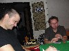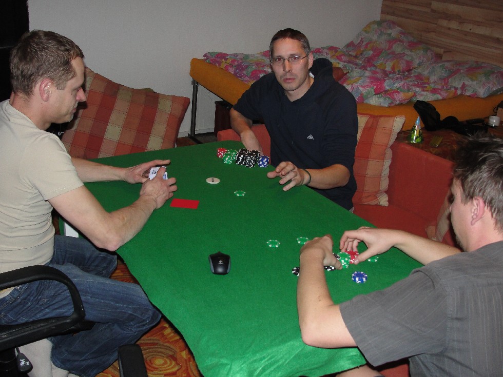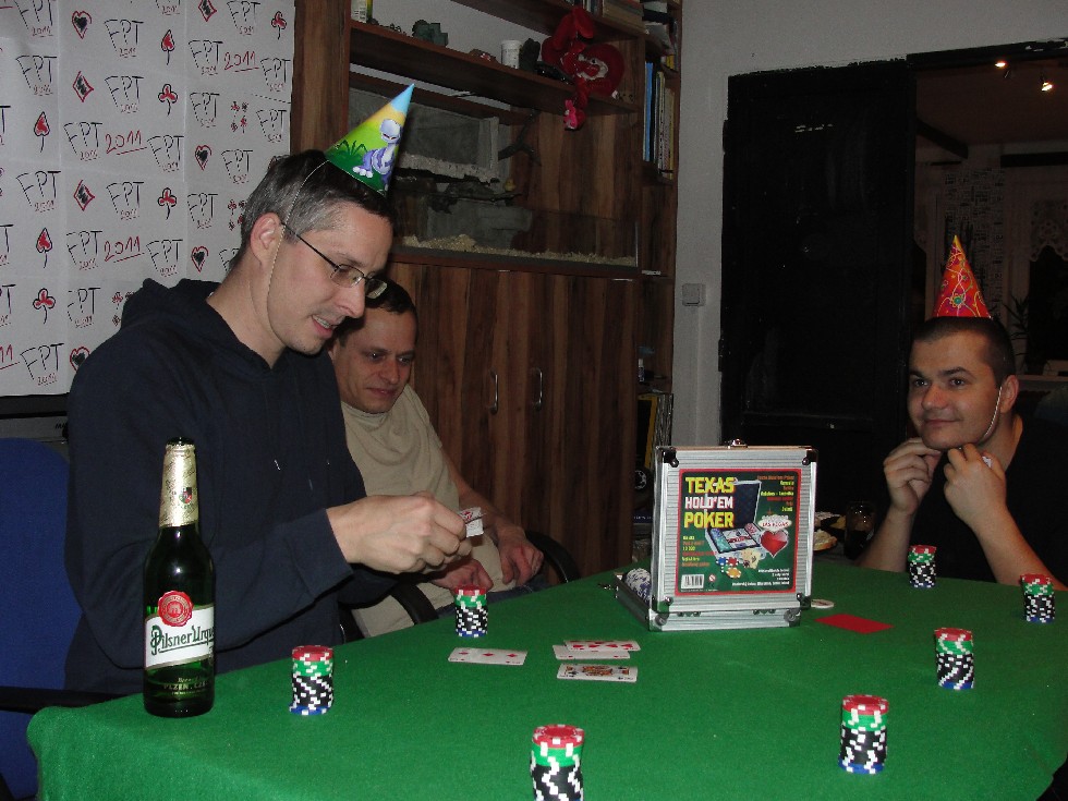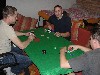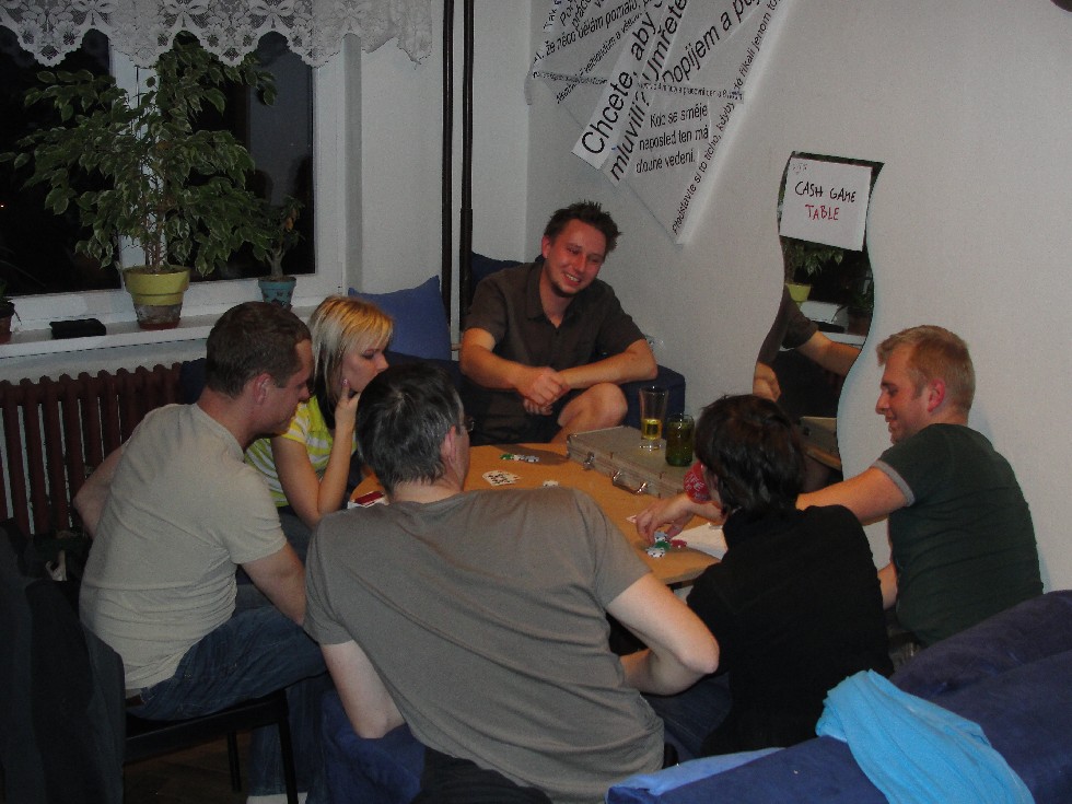 Další turnaj u kulatého stolu nejvíce svědčil Radkovi, který si přivezl famozní formu z Las Vegas. Tři hry se nesly ve znamení revoluční novinky: ante. Další (tentokrát neodhlasovanou) novinkou byly cenné rady vypadnuvších hráčů těm hrajícím :-)