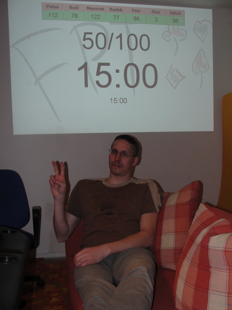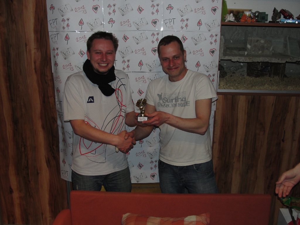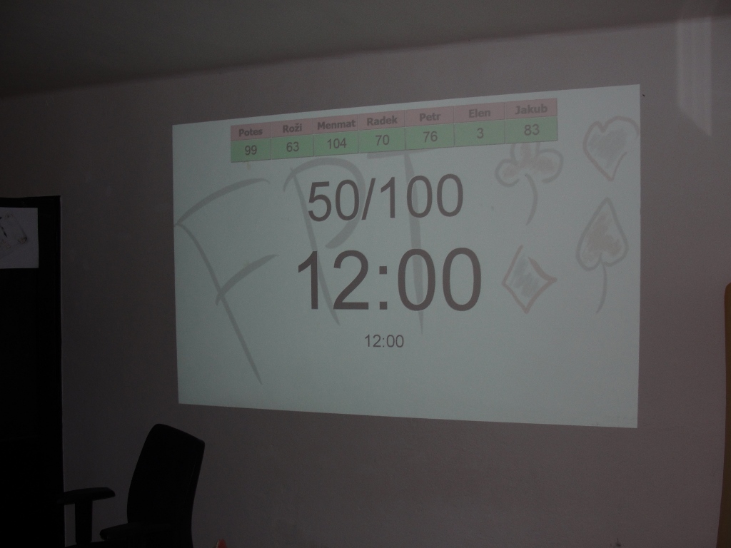 Poprvé jsme zkusili do FPT zařadit nový formát a to deep stack. S 15000 žetony na začátek, doble chance a jedním dokupem. Zatímco double chance nevyužil nikdo dokoupili všichni. Body se rozdávaly 1,5 nasobkem standartního bodování. Vítězem se po dlouhém boji stal Radek a velice se přiblížil vedoucímu duu. Kvalitní a zajímavou hrou se však představili všichni hráči.